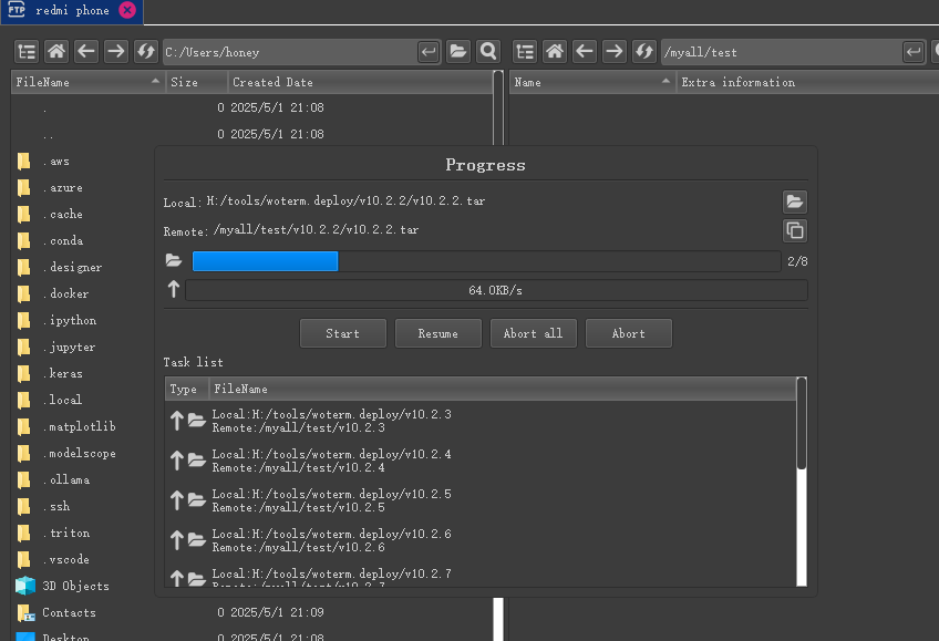 FTP transmission Its interface is consistent with the SFTP method. Doc navigation← SFTP transmissionZModem transmission →