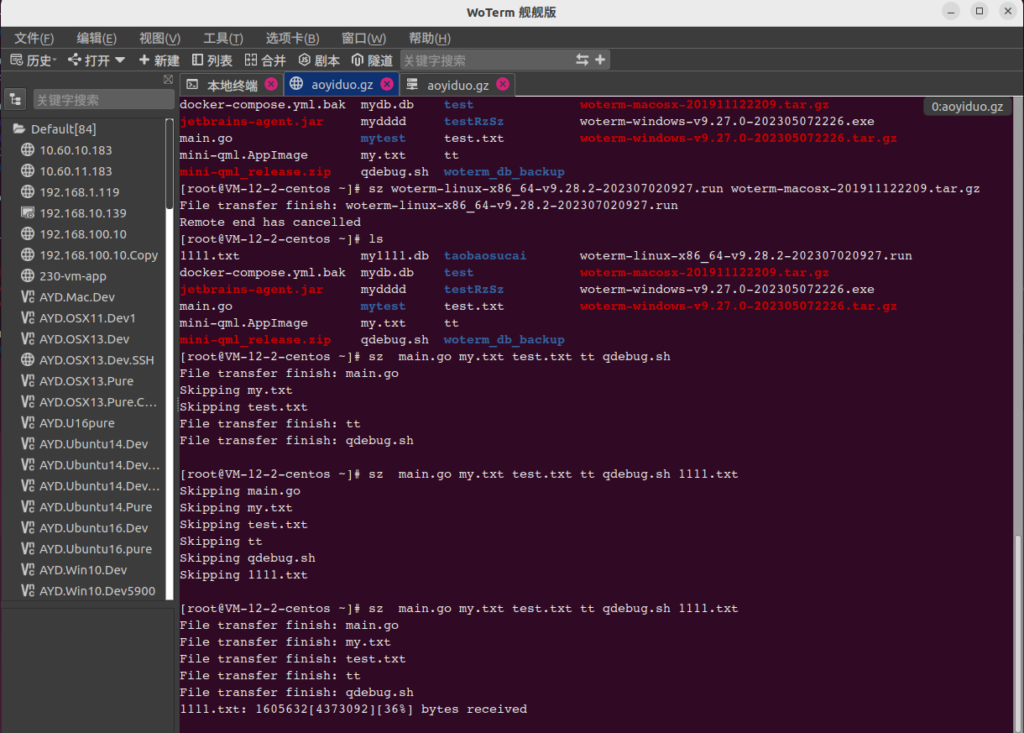 ZModem transmission Enable zmodem file transfer via the right-click menu on the text terminal. Doc navigation← FTP transmissionRDP transmission →