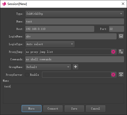 The SSH connection information supports both SSH connections and SFTP assistant connections.