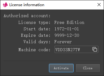 Start the program, press [Main Menu] → [Help] → [License…], and the following window will appear.