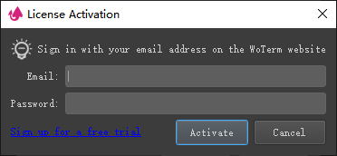 – On successful activation, only your account and license information will be recorded; your password will not be saved. - If you do not have an account, click the blue text link in the window; it will open the User Center page in your browser, where you can follow the on-screen instructions to register an account and apply for a trial.